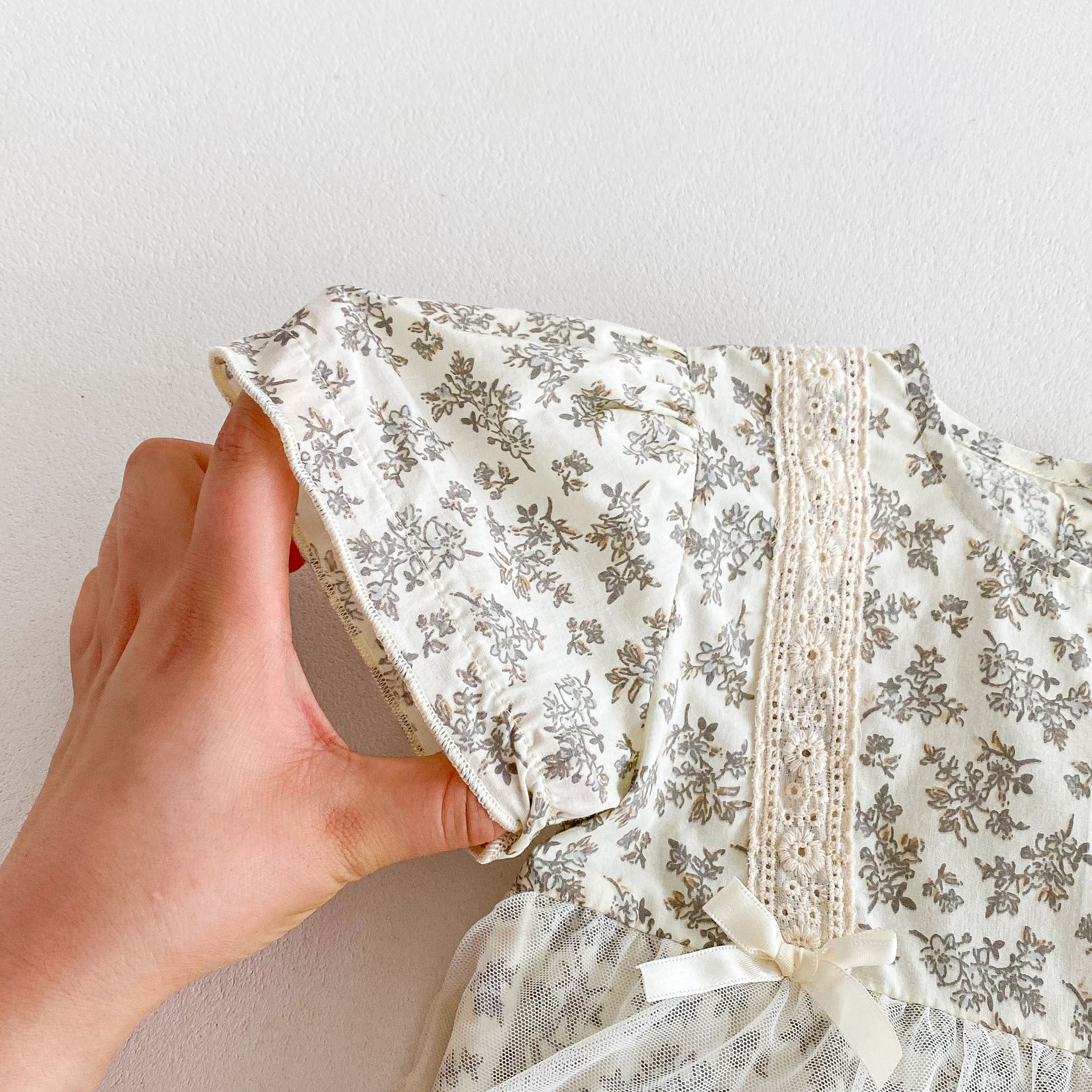 Este romper vestido floral con encaje, suave y cómodo, es ideal para ocasiones especiales: permite que tu bebé luzca adorable y fresca durante sesiones de fotos, paseos, cumpleaños y eventos importantes.